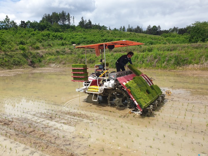▲사진 의성군제공 직진 자율주행 이앙기