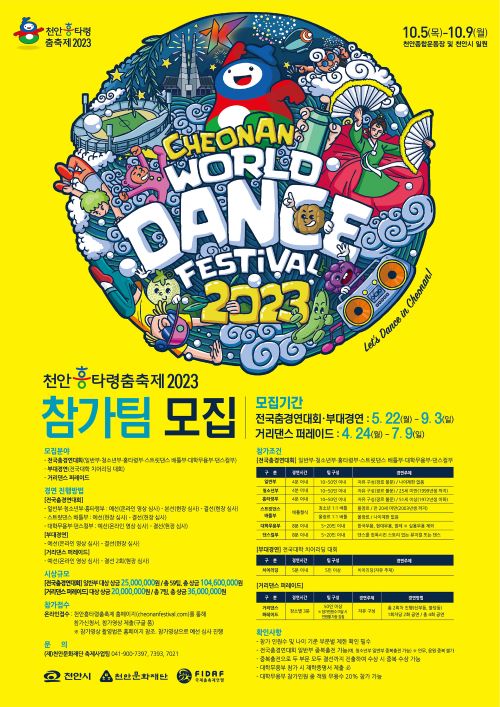 한편, ‘Let’s Dance in Cheonan!’을 슬로건으로 하는 이번 천안흥타령춤축제는 오는 10월 5일부터 9일까지 천안종합운동장 일대에서 열린다.