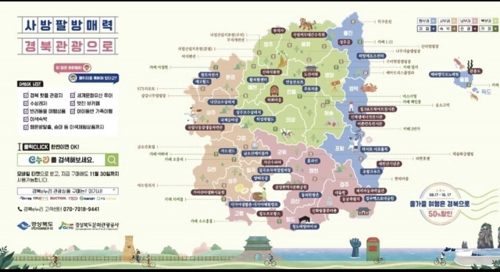 [경북타임뉴스] 이태우기자 = 경북도는 경북도문화관광공사와 함께 오는 10월 17일까지 '경북 e누리 특별 할인행사'를 한다고 17일 밝혔다.