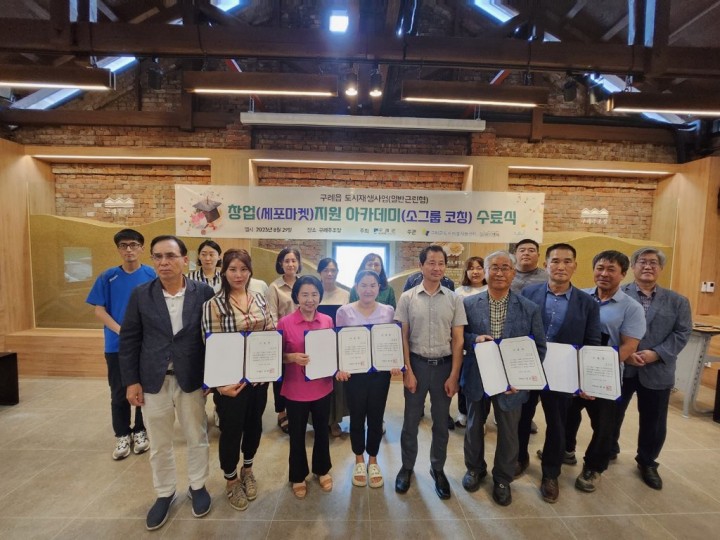 도시재생사업의 일환으로 추진된 이번 아카데미는 세포마켓 입점을 희망하는 지역주민을 대상으로 지난 5월 10일부터 총 6회에 걸쳐 진행됐다.교육 내용에는 비즈니스 모델 구축, 사업계획서 작성 요령 등 창업에 필요한 실질적인 내용들이 담겼고, 전문가의 창업 아이템 코칭, 선진지 견학 등 교육생의 꿈을 구체화할 수 있는 다양한 프로그램도 진행됐다.구례군은 구)제일교회 건물을 리모델링해 세포마켓 점포로 활용할 계획이다. 향후 세포마켓 입점 시 이번 교육 수료생들에게 가산점을 부여할 예정이다.