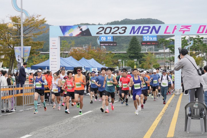 지난 8일 새벽에 내린 비로 구름 끼고 쌀쌀한 날씨였지만, 전남 나주종합스포츠파크에는 이른 아침부터 ‘2023 MBN 나주 마라톤대회’에 참가한 5000명이 넘는 전국의 마라톤 마니아들과 참가자들을 응원하는 시민들로 북적였다.MBN과 매일경제, 나주시육상연맹이 함께 주최한 이번 마라톤대회는 영산강 강변도로와 나주의 역사가 살아 숨 쉬는 옛 문화재 구역 등을 달려보는 ▲하프코스 ▲10km ▲5km로 운영됐다. 다른 대회에서는 볼 수 없었던 6명이 한팀을 이뤄서 달리는 혼성 단체전도 진행돼 눈길을 끌었다.‘당신의 질주가 역사가 된다’라는 슬로건으로 진행된 이날 대회에는 형형색색의 옷을 입은 참가자들 속에 목에 핑크색 스카프를 두른 위아“런" 광주전남지역연합회 청년들이 서로에게 “화이팅"을 외치며 완주를 응원하는 모습이 눈에 띄었다.이들은 나주 영산강변 주위로 호남평야의 너른 벌판이 황금색으로 익어가는 가을 풍경을 만끽하며 각자의 레이스를 즐겼다.한편, 위아“런" 광주전남지역연합회는 전국의 주요 마라톤대회 참석뿐 아니라, 환경 보호 활동과 체육활동이 합쳐진 플로깅 등 선한 영향력을 전하는 다양한 활동을 함께 진행하고 있다.위아“런" 광주전남지역연합회 관계자는 “이번 대회에 약 1000명의 위아“런" 회원이 함께했다. 육상도시로 도약하는 나주의 아름다움에 위아“런" 회원들의 생기를 더하는 값진 시간이었다"면서 “앞으로도 청년들의 에너지로 지역사회를 빛내는 다양한 행사를 준비해 갈 예정이다"고 말했다.