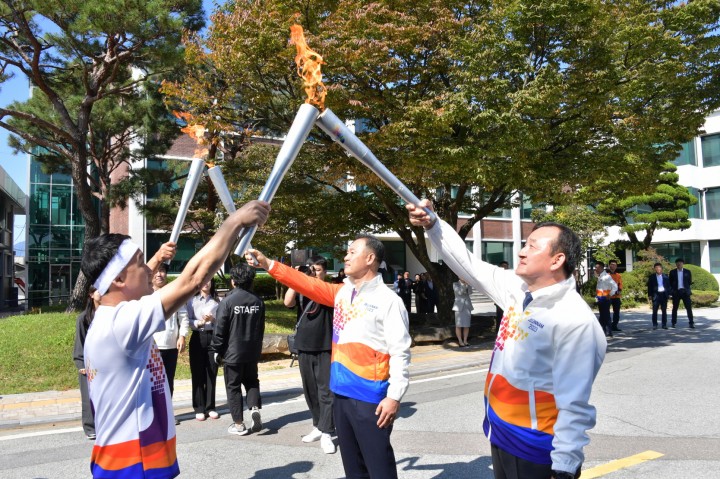 [담양타임뉴스] 오현미 기자 = 전남 담양군은 제104회 전국체전 성공 기원을 위한 성화가 지난 11일 담양군에 도착해 담양군청 광장에서 기념행사를 개최했다.
