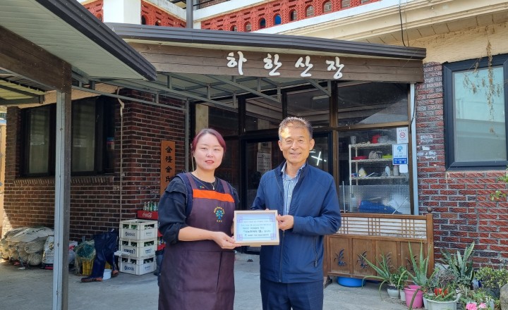 이번 ‘나눔천사의 집’ 현판을 전달 받은 식당은 지역 내 어려운 이웃을 위해 밑반찬을 제공하고 있는 죽곡면 하한리 소재의 식당에 전달됐다.