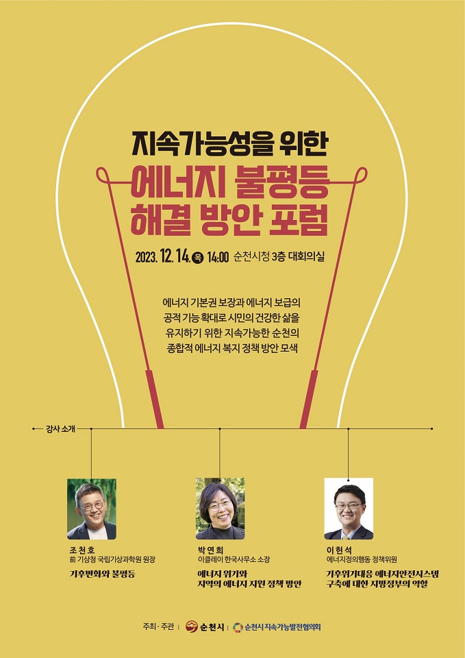 ‘지속가능성을 위한 에너지 불평등 해결 방안’ 포럼 포스터 (사진제공=순천시)