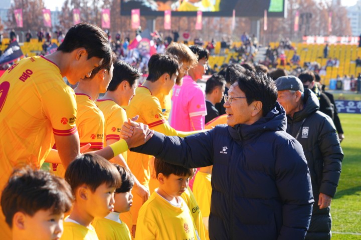 홈 / 스포츠일반 스포츠일반 광주FC 선수단 격려하는 강기정 광주시장 오현미 기자 기사입력 2024-01-02 18:18:08 광주 [광주타임뉴스] 오현미 기자 = 강기정 광주시장이 지난해 12월 3일 광주축구전용구장에서 열린 포항스틸러스와 홈경기 폐막전에 참석해 정규리그 3위로 아시아축구연맹(AFC) 챔피언스리그 엘리트(ACLE) 진출을 확정지은 광주FC 선수단과 자축하고 있다. 오현미 기자 <저작권자 © 타임뉴스 무단전재 및 재배포 금지> 관련 기사 대전하나시티즌, 7득점 빈공 속 울산 원정 승부 2026.04.24 대전하나시티즌, 제주전 홈 첫 승 도전 2026.04.21 대전하나시티즌, 선두 서울 원정…3연패 탈출 시험대 2026.04.17 충북도, 프로야구 ‘퓨처스리그 2군 창단’ 닻 올렸다… KBO와 실무 협의 착수 2026.04.17 강진군, 전남체전서 3개 종목 종합우승…저력 입증 2026.04.15 댓글 댓글 기능은 준비 중입니다.