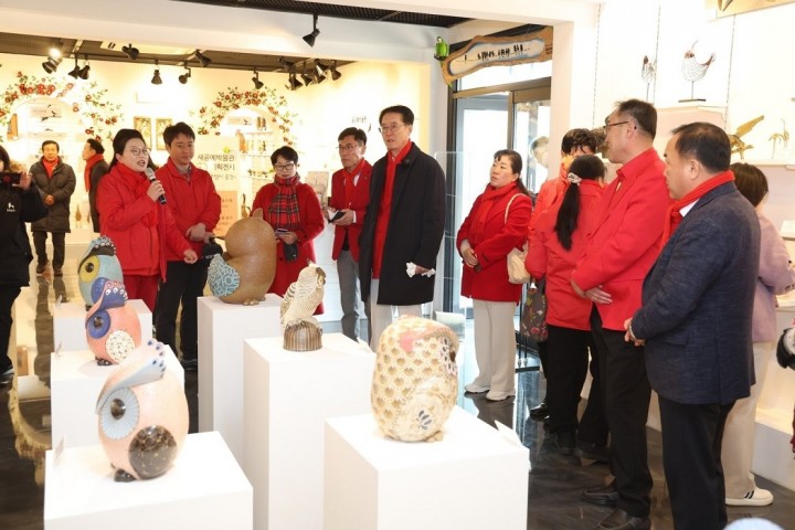 ▲ 지난 30일 신안 새공예박물관 기획전 개막 행사에서 신안군 관계자들이 단체 기념 촬영을 하고 있다.(사진제공=신안군)