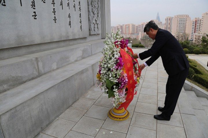[지난해 평양 북중우의탑 방문한 왕야쥔 주북중국대사]