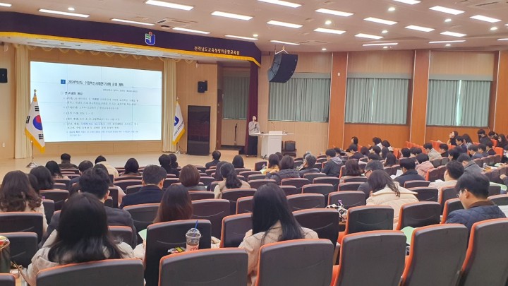 ▲26일 전남창의융합교육원에서 ‘고등학교(서부권) 수업‧평가 교원역량 강화 협의회’가 진행되고 있다.(사진제공=전남교육청)