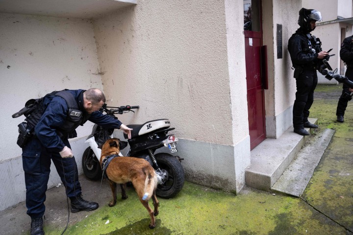 [탐지견으로 마약 수색중인 프랑스 경찰]