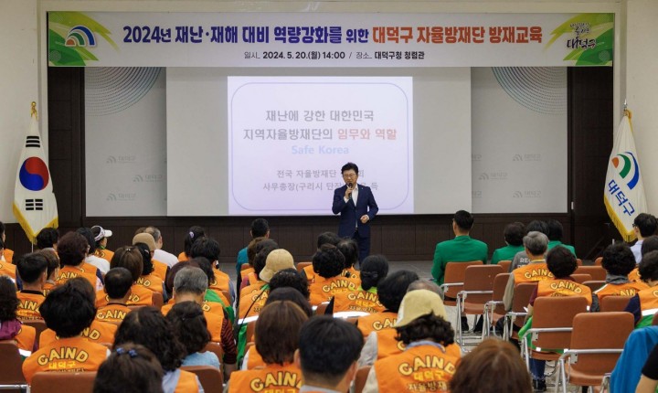 [대전타임뉴스=홍대인 기자] 대전 대덕구(구청장 최충규)는 20일, 대덕구 자율방재단(단장 김미자) 및 방재 담당 공무원 150여 명을 대상으로 재난·재해 대비 역량 강화 교육을 실시했다. 대덕구에 따르면 이날 교육에 정용득 전국자율방재단 연합회 사무총장을 초빙해 방재단의 역사와 재난 시 자율방재단의 임무와 역할 등 재난 대응 및 역량 강화를 위한 교육을 진행했다. 특히 여름철 집중호우와 태풍, 폭염 등의 피해를 줄이기 위한 예방·복구 각 단계에서의 방재단 역할 교육이 방재단원들로부터 큰 호응을 얻었다. 김미자 대덕구 자율방재단장은 “이번 교육으로 신규·기존 단원들의 역량을 강화할 좋은 기회가 됐다"라며 “실제 방재 활동에 참여하고 있는 전국 자율방재단 연합회의 경험과 사례를 활용해 지역 특성을 고려한 방재 활동을 더욱 적극적으로 추진해 나가겠다"라고 말했다. 최충규 대덕구청장은 “최근 이상 기후 현상으로 재해·재난 예측이 어려워져 지역 특성을 잘 알고 있는 방재단의 역할이 중요해지고 있다"라며 “구민의 생명과 재산을 보호하기 위해 대덕구 자율방재단이 중추적인 역할을 해주시길 바란다"라고 말했다. 대덕구 지역 자율방재단은 총 150여 명의 단원들로 구성돼 대덕구를 보다 안전한 도시를 위해 활동하고 있으며, 충북 괴산 수해 피해 지역 복구와 한국타이어 화재 이재민 지원, 오정동 가스폭발 복구 활동 등 다양한 방재 활동을 이어오고 있다.