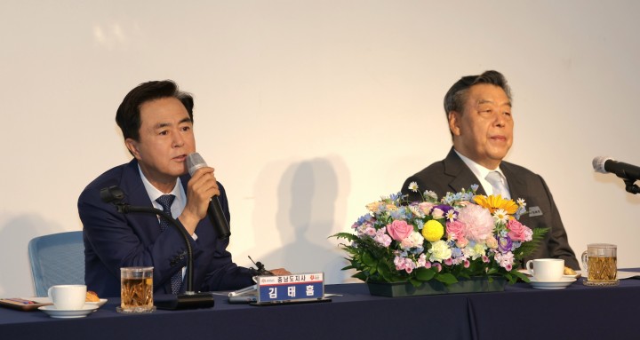 이날 군민과의 대화를 마친 김태흠 도지사는 성일종 국회의원 및 이건완 국방과학연구소장 등이 참석한 가운데 인프라 구축 및 부지 예산확보에 공조하는 MOU를 체결했다.