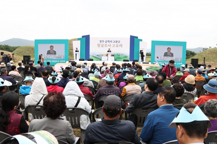 [경주타임뉴스=전찬익기자]신라시대 50여 개의 크고 작은 무덤들이 모여 있는 ‘금척리 고분군’의 본격적인 발굴이 시작된다.경주시는 국가유산청 국립문화유산연구원 국립경주문화유산연구소와 함께 21일 오전 10시 30분 고유제를 시작으로 건천읍 금척리 251번지 일원에서 ‘금척리 고분군 발굴조사’에 나선다고 이날 밝혔다.이번 발굴조사는 경주시가 국립경주문화유산연구소와 함께 중장기 계획을 세우고 처음으로 시행되는 발굴조사라는데 큰 의의가 있다.경주를 대표하는 고분군인 대릉원과 비교될 만큼 중요한 유적이지만, 본격적인 연구는 이번이 처음이기 때문이다.금척리 고분군은 신라가 3국을 통일하기 전 5~6세기에 조성된 것으로 추정된다.금으로 만든 자가 매장되어 있다는 금척(金尺) 설화와 신라의 행정조직체 모량부와의 연관성 때문에 매우 중요한 유적으로 인식되어 왔다.이번 발굴로 신라 왕경 중심부와 주변 고분군의 비교를 통해 금척리 고분군의 성격을 명확하게 밝힐 수 있을 것으로 기대가 모아진다.전체 13만 3400㎡를 총 7개 지구로 나눠 전체적인 발굴조사를 진행해 대형 봉토분은 물론 눈으로 확인되지 않는 고분까지 조사에 나선다.이를 통해 고분 묘역 경계와 폐고분의 존재 여부 등을 파악해 향후 복원·정비에 활용할 계획이다.한편 이날 고유제는 경주시, 국가유산청, 학계, 지역주민 등이 참석한 가운데, 경주향교의 집례로 거행됐다.이날 행사는 조사단의 안전을 기원하고, 금척리 고분군의 첫 학술발굴조사를 축하하기 위해 국악브라스밴드 시도(XIIDO)의 식전공연을 시작으로, 고유제 봉행, 시삽, 기념 촬영의 순서로 진행됐다.주낙영 경주시장은 “이번 행사는 국가유산청에서 실시하는 미래지향적 국가유산 관리체계를 위한 첫 사례로 ‘국가유산 거주지역 정주환경 개선’ 및 ‘역사문화 자원을 활용한 지역 활성화’의 모범사례가 되길 희망한다"고 강조했다.