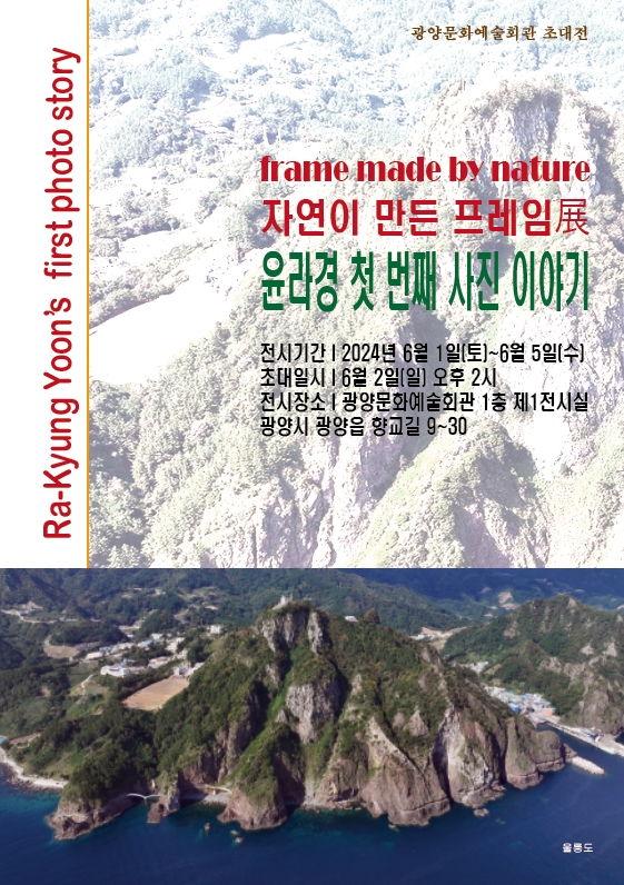 이번 전시는 한국프로사진작가협회 광양지부장을 맡고 있는 윤라경 작가의 첫 번째 사진 이야기로 자연이 주는 위로를 담은 풍경 작품 50여 점을 선보인다.