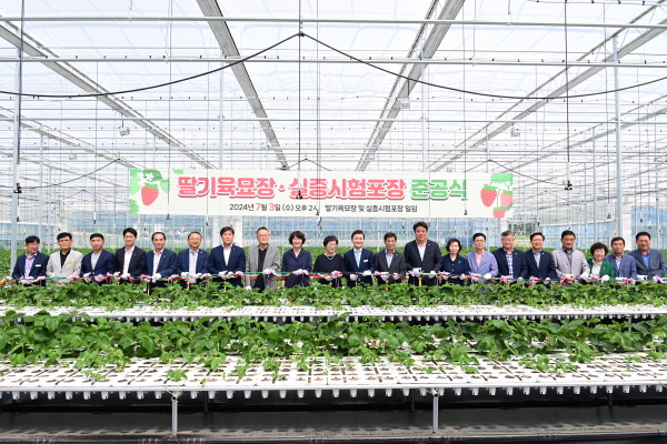 딸기육묘장 및 실증시험포장은 대가야읍 내곡리 509번지 외 6필지에 총사업비 39억 2400만원을 확보하여 연면적 13,286㎡(4,019평)의 부지에 딸기육묘장 1,933평, 실증시험포장 861평의 규모로 지난 23년 6월에 착공, 23년 12월에 완공하여 올해 5월에 스마트 온실 조성 및 정수시설 설비를 완료한 후 이달 3일 준공식을 개최하게 되었다.딸기육묘장은 딸기 우량모주 20만주를 생산을 목표로 고령군 딸기 우량묘 보급사업을 운영할 예정이며, 실증시험포장은 농촌지도기반 조성사업의 일환으로 신기술 실증 시범재배의 장으로 활용할 예정이다. 이날 행사를 통해 고령군(군수 이남철)은 최근 농업 신기술의 발전, 그리고 딸기 우량묘에 대한 인식 변화에 따라 고령 농가의 수요에 발맞춰 앞으로 더욱더 딸기우량묘의 원활한 보급 및 신기술 보급분야에 대한 검증의 공간으로 고령군의 농업정책이 자리매김할 수 있도록 더욱 노력하겠다고 밝혔다.