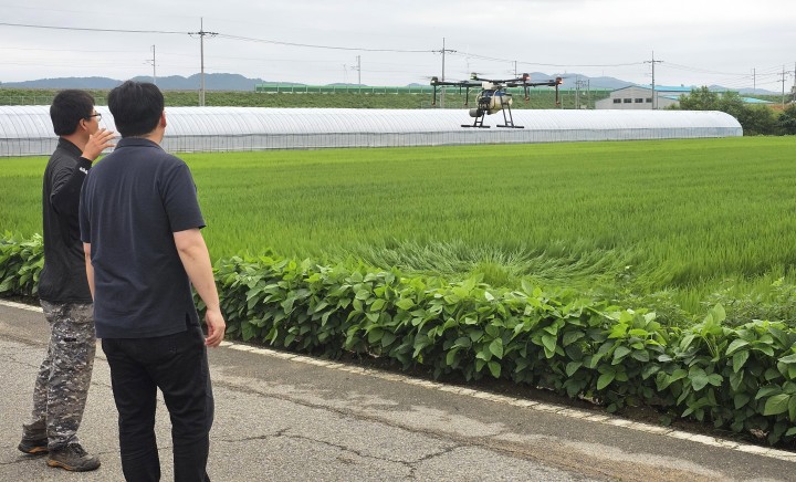 영덕군 병곡면 벼 병해충 예방 1차 드론 공동방제 시행 (사진:영덕군)