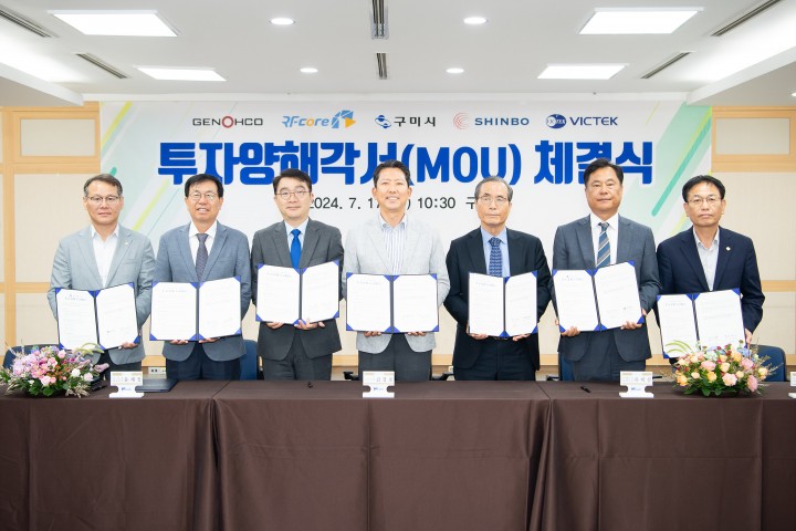 체결식에는 유재정 ㈜신보 대표이사, 유태삼 ㈜제노코 대표이사, 이병남 알에프코어㈜ 부사장, 임현규 ㈜빅텍 본부장, 김장호 구미시장, 박교상 시의회 의장, 한화시스템 양태호 구미사업장장 및 관계기관 임직원 등 15여 명이 참석했다.