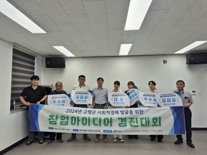 [고령타임뉴스 이승근 기자] 고령군(군수 이남철)과 신활력플러스사업추진단(단장 서철현)은 8월 8일(목) 대가야 행복 드림센터에서 「고령군 사회적경제 발굴을 위한 창업아이디어 경진대회」를 열고 수상자 6팀을 선정했다.