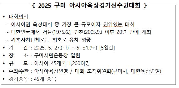 [구미타임뉴스 이승근 기자] 구미시가 2025 구미아시아육상경기선수권대회 준비에 본격 돌입했다.