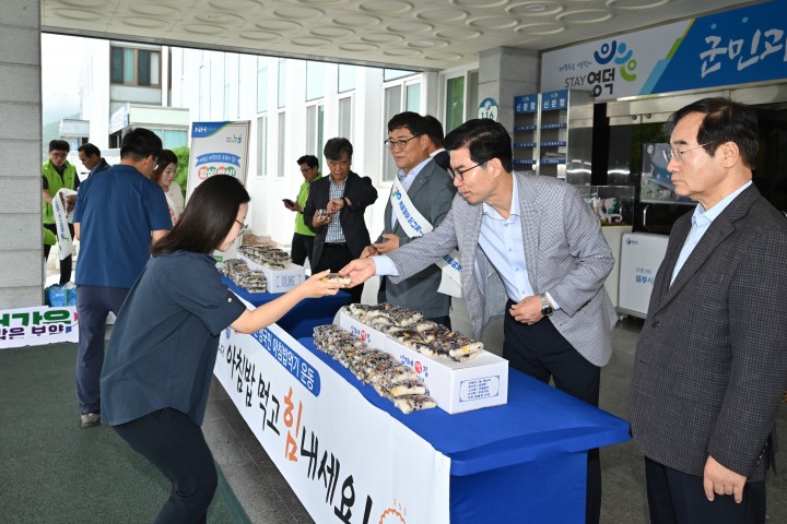 영덕 관내 농축협 직원들은 영덕군청을 찾아 아침밥 먹기 캠페인을 펼쳤다. (사진:영덕군)