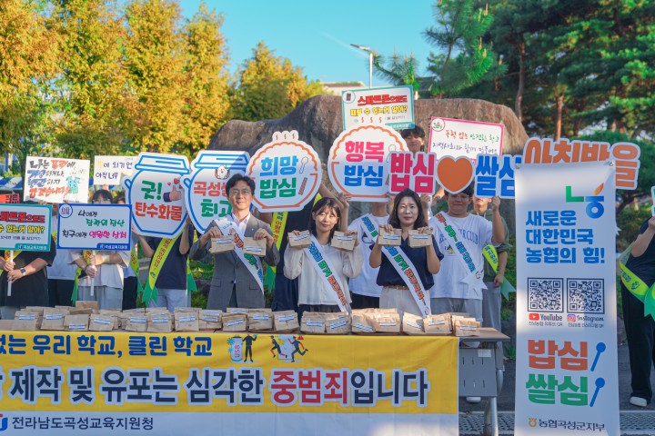 캠페인에는 방현용지부장, 곡성교육청 홍성수 교육지원과장, 곡성경찰서와 함께 전남조리과학고 학생 및 교사 200여 명 대상으로 건강한 식습관 형성을 위해 ‘아침밥 먹기 캠페인’과 딥페이크 없는 클린학교를 위한 ‘학교폭력 예방 캠페인’을 실시 했다.