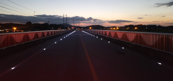 설치된 도로표지병은 지면에 부착된 태양광 충전식 발광장치로 낮에 태양광을 전기에너지로 바꾸어 충전한 뒤, 밤이 되면 환하게 밝히면서 어두운 진입로에 빛이 되는 역할을 하는 장치이다.