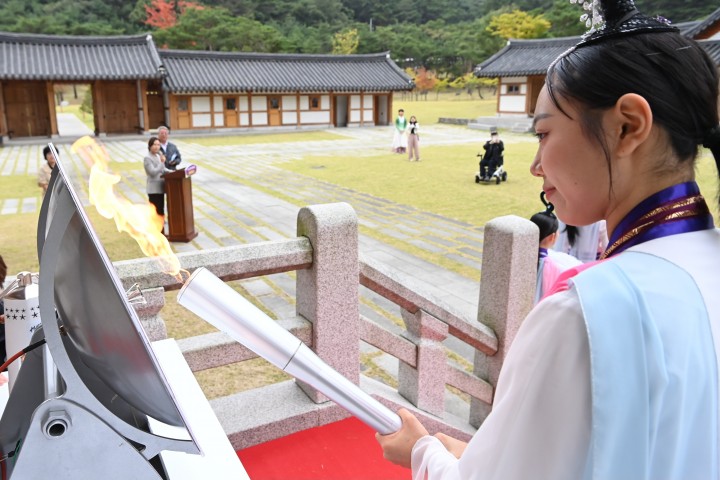 [김천타임뉴스 이승근 기자] 김천시는 10월 14일 오전 9시 황악산 사명대사 공원 평화의 탑에서 시민 화합과 결속을 다지고, 성공적인 시민체전 개최를 기원하는 성화를 채화했다.