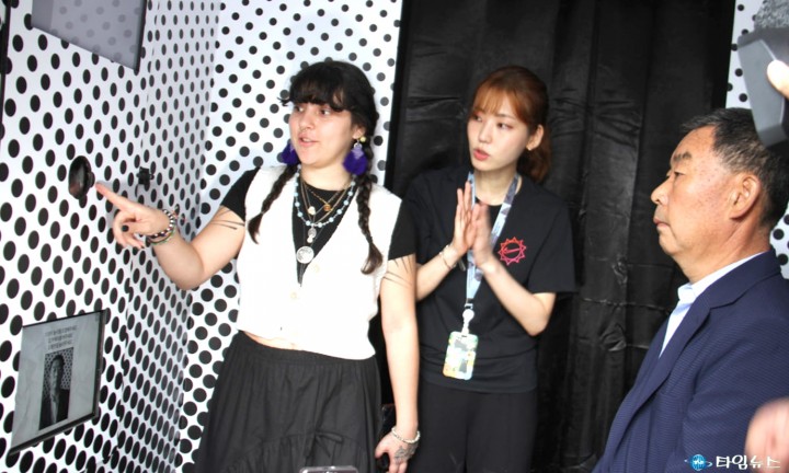 ▲이강현 국립아시아문화전당장이 15일 개막전 상상마당에서 열린 기자 간담회에서 야외 전시에 대해 설명하고 있다.(사진=오현미 기자)