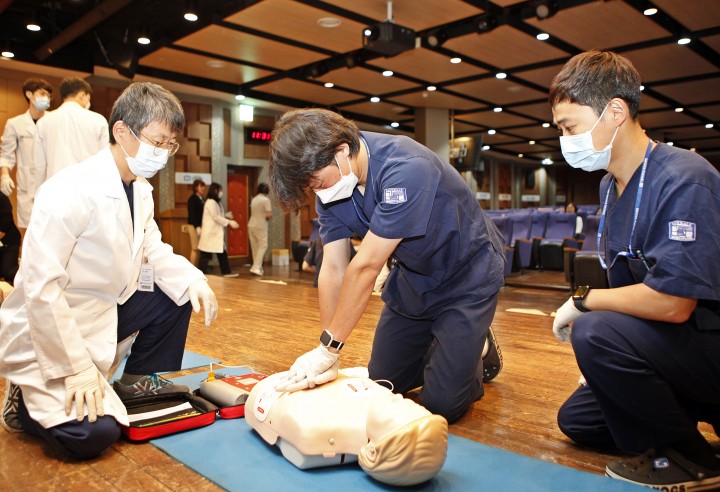 홈 / 건강 건강 대전성모병원, 전교직원 심폐소생술 교육 실시 홍대인 기자 기사입력 2024-10-21 18:34:03 대전 [대전타임뉴스=홍대인 기자] 가톨릭대학교 대전성모병원(병원장 강전용 신부)은 21일부터 25일까지 병원 9층 대강당에서 ‘2024년 전교직원 심폐소생술 교육’을 실시한다. 이번 교육은 교직원의 응급처치 능력 향상을 목표로 병원 내에서 심정지 환자가 발생했을 경우를 대비한 상황별 대처법을 비롯 가슴 압박과 자동심장충격기 사용법을 익히는 실습교육 등으로 진행됐다. 홍대인 기자 <저작권자 © 타임뉴스 무단전재 및 재배포 금지> 관련 기사 건협 대전, 노동절 직장인 건강검진 실시 2026.04.24 충남대병원, 간이식 혈관재건 ADM 세계 첫 입증 2026.04.24 충북, ‘암 예방’에 남녀 따로 없다… 12세 남성 청소년 HPV 무료 접종 2026.04.23 충남대병원, 공공보건의료 협력 세미나 개최 2026.04.22 “돈 없어도 치료 먼저”... 충북 의료비후불제, 3천 명의 생명 지켰다 2026.04.22 댓글 댓글 기능은 준비 중입니다.
