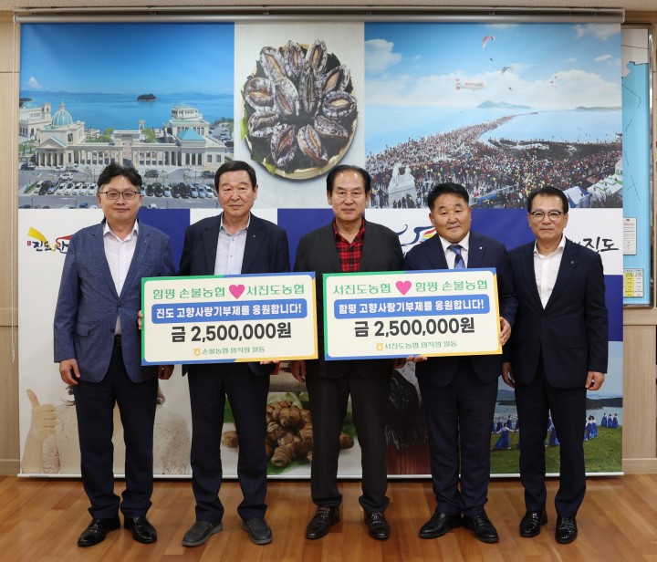 [진도타임뉴스] 오현미 기자 = 전남 진도군은 서진도농협과 장흥군 용산‧안양농협이 상호기부를 통해 고향사랑기부제에 동참했다고 밝혔다.이번 상호기부는 서진도농협 임직원과 장흥군 용산‧안양농협 임직원이 진도와 장흥에 서로 400만 원씩 기부하면서 지역 발전을 응원하는 계기를 마련했다.진도군지부 김효영 지부장과 서진도농협 강성민 조합장은 “고향사랑기부제의 성공적인 정착을 위해 농협 직원들이 적극적으로 참여하게 됐다"며, “향후 기부제 활성화를 위해 진도군과 다양한 방안을 찾는 데 동참하겠다"고 전했다.김희수 진도군수는 “장흥 용산‧안양농협 조합장님을 비롯한 직원분들께서 우리 지역을 위해 사랑하는 마음을 담아 고향사랑기부제에 동참해 주셔서 진심으로 감사드린다"며, “기부금은 지역의 활력을 되찾기 위해 소중하게 사용하겠다"고 말했다.서진도농협은 다른 지역과의 상호기부 확대 등 앞으로 고향사랑기부제 홍보를 더욱 강화해 나갈 계획이라고 전했다.