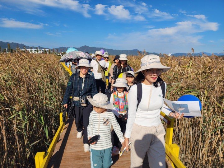 [강진타임뉴스] 오현미 기자 = 전남 강진군은 지난 26일 제9회 강진만 갈대축제 개막식 전에 에코가족원정대 캠페인을 진행했다.이번 행사는 온라인으로 선착순 200명 모집에 총 304명이 접수를 하며 큰 관심을 받았다.304명 중 관내 거주자는 72명, 관외 거주자는 268명으로, 다양한 지역에서 많은 사람들이 참여해 청명한 가을날 강진만의 아름다움을 만끽했다.이날 행사에 참여한 가족들은 해설사와 함께 강진만 갈대숲을 거닐며 멸종위기종과 강진만 보존의 중요성에 대한 설명을 듣고, 생태체험관을 방문해 4D 입체영상실, 갯벌체험실 등 다양한 체험을 즐겼다.강진군은 이번 캠페인을 통해 강진만 갈대숲의 아름다움과 생태적 가치를 알리고, 환경 보호에 대한 인식을 높이는 데 기여했다고 밝혔다.제9회 강진만 갈대축제는 오는 11월 3일까지 강진만 생태공원에서 열리며, 갈대숲 힐링 체험, 생태탐방로 걷기, 갈대배 타기, 연날리기 등 다양한 프로그램이 진행된다.강진군수 강진원은 “이번 갈대축제가 강진만 갈대숲의 아름다움과 생태적 가치를 알리고, 지역 경제 활성화에도 기여할 것으로 기대된다"며 “참여하신 가족분들이 즐거운 시간을 보내고 좋은 추억을 쌓길 바란다"고 말했다.