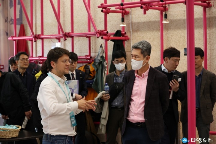사진 : 이강덕 포항시장은 30일 바젤대 혁신센터를 방문해 크리스티안 슈나이더(Christian Schneider) 센터장으 로부터 시설 관련 설명 을 듣고 있다.
