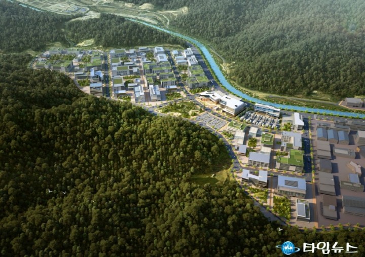 사진 : 포항 블루밸리 국가산업단지 내 수소연료전지 클로스터 조감도. 사진3. 국내 최초 수소특화단지 포항 홍 보물.