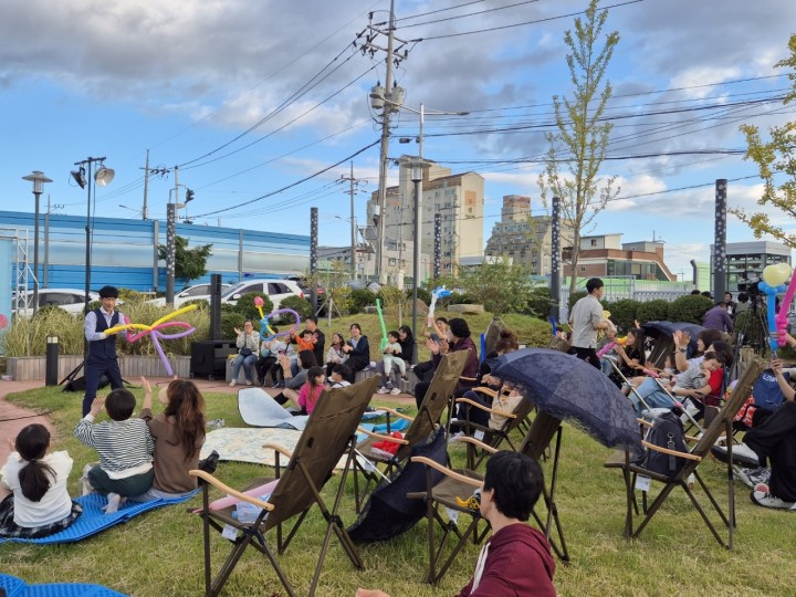 ▲시민들이 아트풍선공연을 관람하는 모습.(사진제공=순천시)