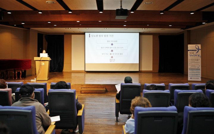 [대전타임뉴스=홍대인 기자] 가톨릭대학교 대전성모병원(병원장 강전용 신부)은 8일, 병원 9층 대강당 상지홀에서 ‘제13회 당뇨인의 날’ 행사를 개최했다. 이번 행사는 본원에서 치료를 받는 당뇨병 환자와 가족을 대상으로 △연속혈당측정기를 이용한 슬기로운 혈당 관리(내분비내과 이인석 교수) △당뇨병 환자의 전지적 발 관리 시점(간호부 김해주 당뇨병교육간호사) △생생 영양정보통, 그것이 궁금하다(영양팀 민재연 영양사) 등을 주제로 한 건강강좌가 진행됐다. 또한 연속혈당측정기를 이용한 나만의 혈당 관리 팁에 대한 질의응답과 자가 영양관리를 위한 간편식 및 영양보충제품 전시, 혈당·혈압 검진 등도 함께 이뤄졌다.