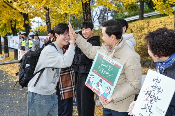 이남철 고령군수는 2025학년도 대학수학능력시험일인 14일 아침, 시험이 치러지는 대가야고등학교를 방문해 수험생들을 격려했다.