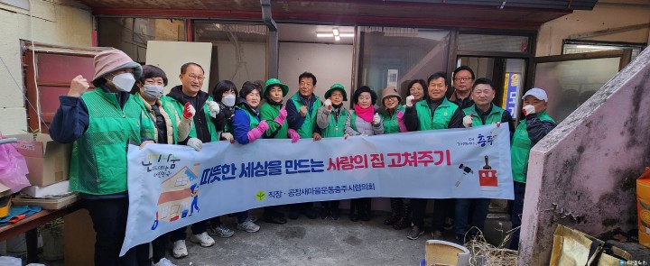 [충주타임뉴스=한정순 기자] 직장·공장새마을운동충주시협의회(회장 김화균)는 20일 문화동 소외계층 가구를 대상으로 사랑의 집 수리 봉사활동을 펼치며 따뜻한 나눔을 실천했다. 이른 아침 7시부터 시작된 봉사에는 직장회원과 문화동새마을부녀회원 20여 명이 참여해 집 안에 쌓인 쓰레기를 치우고, 30년 동안 교체하지 못한 도배와 장판을 새롭게 교체하며 어르신이 밝고 쾌적한 환경에서 생활할 수 있도록 지원했다. 김화균 협의회장은 “어려운 이웃들이 더 나은 환경에서 안정된 삶을 누릴 수 있도록 지속적으로 재능을 기부하겠다"며, “시민이 행복한 충주시를 만들기 위해 앞장서겠다"고 밝혔다. 이번 봉사활동을 통해 해당 가구의 주거환경이 크게 개선되어 어르신의 삶의 질 향상에 기여했다는 평가를 받았다.