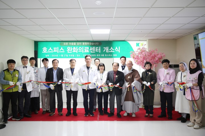 [대전타임뉴스=홍대인 기자] 건양대병원이 보건복지부로부터 입원형 호스피스전문기관으로 지정받아 ‘호스피스 완화의료센터’를 개소하고 본격 운영에 들어갔다. 27일 오후 1시 30분 건양대병원 8층 호스피스병동에서 개최된 개소식에는 김희수 건양교육재단 설립자 겸 명예총장, 배장호 의료원장, 김선문 진료부원장, 조도연 호스피스센터장을 비롯한 내외귀빈 100여 명이 참석했다. 호스피스 완화의료는 말기 환자의 신체적 증상을 적극적으로 조절하고 환자와 가족의 심리 사회적, 영적 어려움을 돕기 위해 의사와 간호사, 사회복자사 등으로 이뤄진 다학제팀이 환자와 가족의 고통을 경감시켜 삶의 질을 향상시키는 의료서비스다. 암 환자가 증가하면서 호스피스 이용률은 높아지고 있지만, 대전지역 호스피스 병상은 그동안 대전보훈병원(16), 대전성모병원(14), 충남대병원(10) 등 40병상에 불과해 말기 암환자들이 호스피스 완화의료를 받고 싶어도 오랫동안 대기하는 실정이었다. 실제 수도권이나 전라도, 경상도에 비해 대전충청 지역 호스피스 전문의료기관은 매우 부족한 것으로 나타났으며, 세종시에는 호스피스 전문의료기관이 없는 실정이다. 건양대병원에 호스피스 병상이 12개 추가되면서 지역 암 환자와 가족에게는 이용폭이 넓어지고 지역 의료서비스의 질이 향상될 것으로 기대되고 있다. 실제 호스피스 병동 입원환자 보호자 A씨는 “일반 병실에서는 기대하기 어려운 각종 돌봄서비스가 제공될 뿐 아니라, 마지막 순간을 함께할 수 있다는 점이 만족스럽다"라며, “오랜 대기 끝에 건양대병원 호스피스병동 신설로 입원할 수 있게 되어 다행스럽다"라고 말했다. 건양대병원 호스피스 완화의료센터에는 12개의 병상과 더불어 상담실, 가족실, 임종실, 프로그램실 등을 갖췄으며, 의사와 간호사, 사회복지사, 요법 강사, 자원봉사자가 한 팀이 되어 환자와 가족을 위한 다양한 돌봄 서비스를 제공한다. 건양대병원 배장호 의료원장은 “고통받는 말기 암 환자들이 마지막을 가족들과 편안하게 정리할 수 있는 장소를 마련하기 위해 개소하게 되었다"라며, “지역 암환자들이 편안하게 이용할 수 있도록 최선을 다할 것"이라고 말했다.