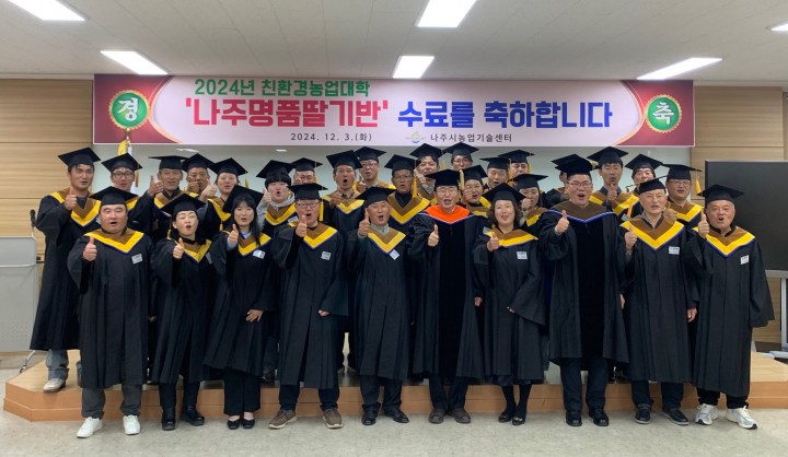 ▲나주시는 지난 3일 나주농업기술센터 농업인교육관에서 제17기 나주시 친환경농업대학 수료식을 개최했다.(사진제공=나주시)