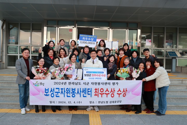 [보성타임뉴스] 오현미 기자 = 전남 보성군은 지난 4일 전남도청 김대중강당에서 열린 ‘전남도 자원봉사자대회’에서 자원봉사센터 우수 시군 평가 분야 ‘최우수상’을 수상하고 포상금 300만 원을 받았다고 밝혔다.