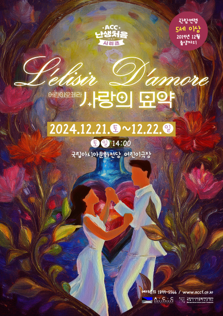 [광주타임뉴스] 오현미 기자 = 전 세계에서 가장 사랑 받는 인기 오페라 ‘사랑의 묘약’이 어린이와 청소년들의 눈높이에 맞춘 공연으로 찾아온다. 국립아시아문화전당재단(이하‘ACC재단’)은 ACC 난생처음 시리즈로 어린이를 위한 오페라‘사랑의 묘약’을 오는 21일과 22일 ACC 어린이문화원 어린이극장에서 선보인다. 오페라‘사랑의 묘약’은 이탈리아의 작곡가 가에타노 도니제티( Gaetano Donizetti)의 천재성이 돋보이는 작품이다. 유쾌한 웃음과 아름다운 멜로디, 재치 넘치는 이야기와 순수한 사랑을 소재로 온 가족이 함께 즐길 수 있다. 시골의 순수 청년 네모리노가 몰래 짝사랑하는 아름다운 농장 주인 아가씨 아디나의 마음을 얻기 위해 전 재산을 털어 가짜 ‘사랑의 묘약’을 구입하면서 벌어지는 이야기를 담고 있다. 이번 공연은 오페라를 처음 접하는 어린이들이 부담 없이 관람할 수 있도록, 대사를 노래하듯 부르는 ‘레치타티보’를 한국어로 번역해 내용을 이해하기 쉽게 풀어냈다. 또 아리아와 중창은 원어인 이탈리아어로 구성해 원작의 아름다움과 따뜻한 감성을 그대로 느낄 수 있도록 했다. 어린이를 위한 오페라 ‘사랑의 묘약’은 21일과 22일 오후 2시에 공연하며, 5세 이상이면 관람 가능하다. 관람권은 1만 5000원이며, ACC재단 누리집에서 예매할 수 있다. 김선옥 국립아시아문화전당재단 사장은 “올 한해 어린이극장 난생처음 시리즈를 통해 발레, 오페라, 국악무용극 등 다양한 장르의 공연을 선보여 많은 사랑을 받았다"며 “앞으로도 어린이 관객들의 눈높이에 맞춘 콘텐츠를 통해 다양한 문화예술 경험을 선사하겠다"고 밝혔다.