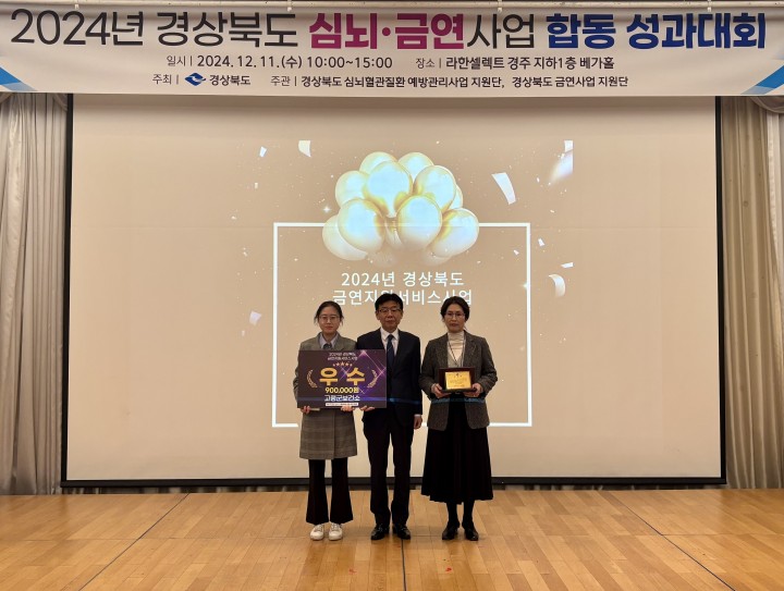 [고령타임뉴스 이승근 기자]고령군(군수 이남철)은 2024년 12월 11일 경주에서 열린 경상북도 주관 「2024년 심뇌혈관질환 예방관리사업 .금연사업 성과대회」에서 금연지원서비스사업 2년 연속‘우수 기관상’을 수상했다.