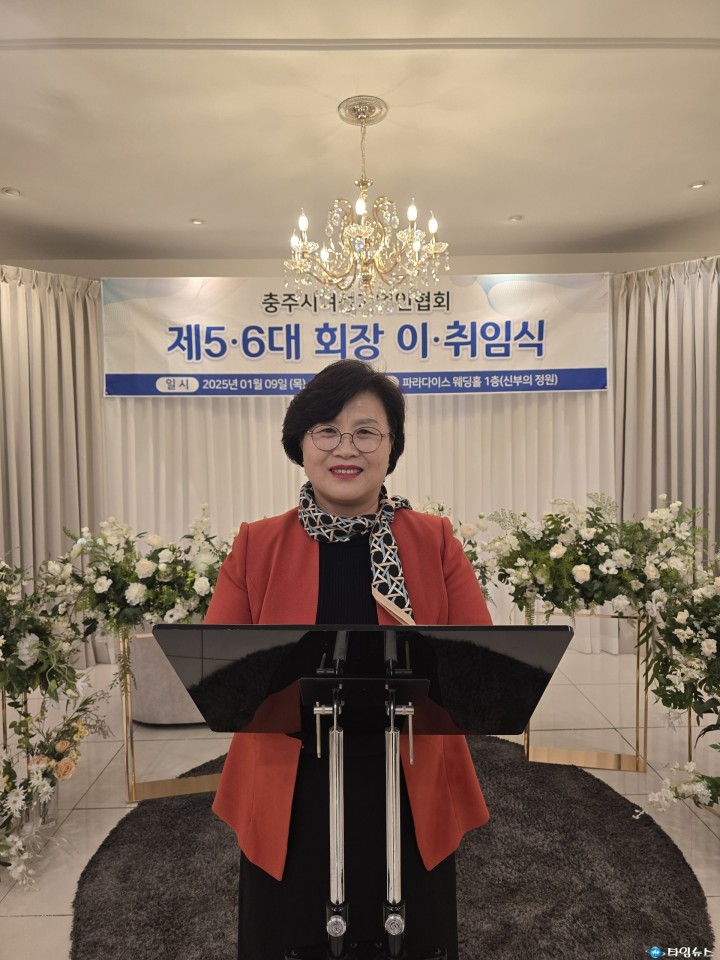 [충주타임뉴스=한정순 기자] 충주시 여성기업인 협회가 지난 9일 파라다이스 예식장에서 제5·6대 회장 이취임식을 개최했다. 행사에는 지역 내 기관 단체장과 회원사 대표 등 40여 명이 참석해 자리를 빛냈다. 박연주 회장(고려전자(주) 대표)은 2년간의 임기를 마치고 이임했으며, 이용숙 신임 회장((주)3A 대표)이 새롭게 협회장직을 맡았다. 이용숙 신임 회장은 취임사에서 “어려운 경제 상황 속에서도 여성 기업인의 경쟁력을 강화하고 협회의 화합과 기업 성장을 통해 지역 경제 활성화에 기여하겠다"고 포부를 밝혔다. 조길형 시장은 축사에서 “급변하는 국내외 경제 환경 속에서도 지역 경제를 이끌어가는 여성 기업인들의 역할이 중요하다"며, “협회가 지역 경제의 든든한 반석이 되길 기대한다"고 당부했다. 한편, 2011년 7월 설립된 충주시 여성기업인 협회는 여성 기업인의 지위 향상과 권익 보호를 목적으로 운영되고 있으며, 현재 29명의 회원이 활동 중이다. 협회는 여성 기업인의 경쟁력 강화와 지역사회 기여를 위한 다양한 활동을 전개하고 있다.