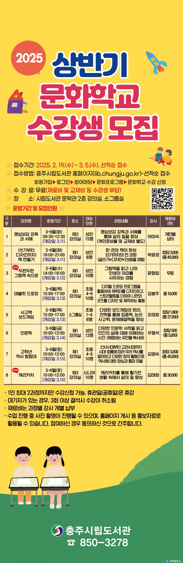 충주시립도서관, 2025년 상반기 문화학교 운영