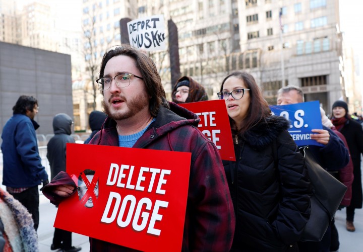지난 19일 뉴욕에서 DOGE에 항의하는 시위대