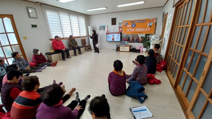 ▲내안애(愛) 프로그램을 통해 노인 자살예방 교육을 하고 있다.(사진제공=신안군)