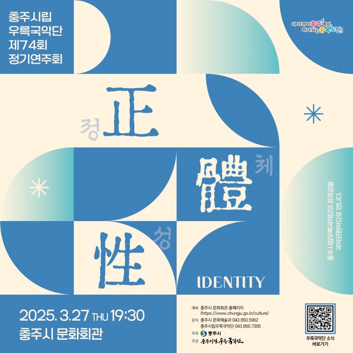[충주타임뉴스=한정순 기자] 충주시립우륵국악단(단장 김진석)이 오는 27일(목) 오후 7시 30분, 충주시 문화회관에서 제74회 정기연주회 ‘정체성(IDENTITY)’을 개최한다고 밝혔다.