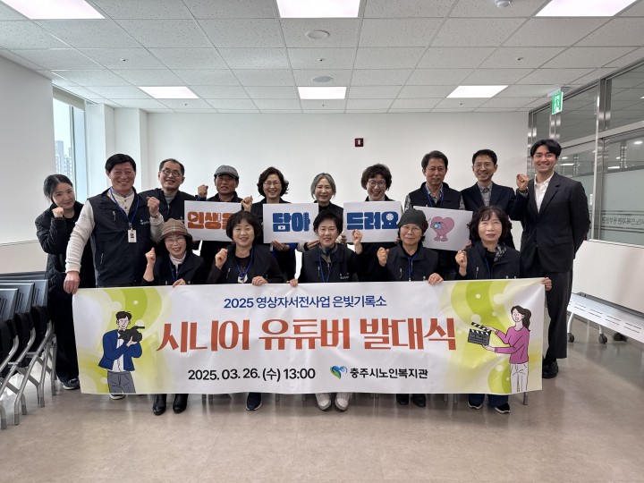 [충주타임뉴스=한정순 기자] 충주시 노인복지관(관장 김웅)은 3월 26일 동부 분관에서 영상자서전 사업 ‘은빛기록소’의 시니어 유튜버 발대식을 성황리에 개최했다고 밝혔다.이번 발대식은 충북 도민의 삶을 영상 콘텐츠로 기록하고, 이를 통해 세대 간 소통을 증진하는 동시에 어르신들에게 새로운 복지 일자리 기회를 제공하기 위해 마련됐다. ‘은빛기록소’는 고령 세대가 직접 자신의 인생 이야기를 영상으로 제작하는 프로그램으로, 어르신들이 콘텐츠의 주체로 참여하는 점에서 큰 의미를 갖는다.참여 어르신들은 지난 2월 진행된 교육 과정을 성공적으로 수료했으며, 이날 발대식을 기점으로 본격적인 시니어 유튜버 활동에 돌입하게 됐다.이날 행사에서는 참여자들에게 시니어 유튜버로서의 자긍심을 높일 수 있도록 이름이 새겨진 명함과 명찰이 전달됐다. 명함을 받은 한 어르신은 “진짜 유튜버가 된 것 같아 설렌다"며 “충주시민의 삶을 영상으로 기록해 많은 사람들에게 감동과 공감을 전하고 싶다"고 소감을 전했다.김웅 관장은 “시니어 유튜버로서 첫발을 내디딘 어르신들께 진심으로 축하드린다"며 “이들의 손으로 기록되는 삶의 이야기가 지역 사회에 따뜻한 울림을 전하고, 세대 간 공감의 다리가 되길 바란다"고 말했다.