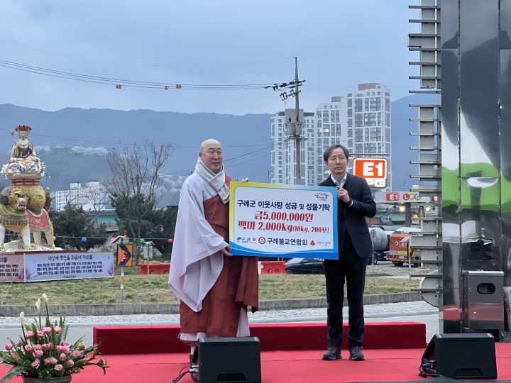 이날 기탁된 현금과 백미는 사회복지공동모금회를 통해 어려운 이웃과 복지시설 등에 전달될 예정이다.구례불교연합회에서는 “부처님 오신 날을 맞이하여 개최한 봉축 점등식에 관내 어려운 이웃에게 조금이나마 보탬이 되기를 바라며, 부처님의 자비와 나눔으로 모든 군민이 늘 건강하고 행복하게 지낼 수 있도록 앞으로도 나눔을 실천하겠다"고 전했다.이에, 이길용 부군수는 “매년 자비 나눔을 통해 사랑의 온기를 불어넣어 주시는 구례불교연합회에 감사드리며 베풀어주신 따뜻한 마음을 담아 도움이 필요한 어려운 이웃들에게 잘 전달하겠다"고 말했다.