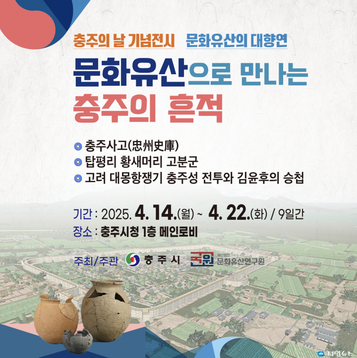 [충주타임뉴스=한정순 기자] 충주시는 ‘충주의 날(4월 23일)’을 기념해 지역의 역사와 문화유산을 시민들과 함께 공유하고자 ‘문화유산으로 만나는 충주의 흔적’을 주제로 전시회를 개최한다고 10일 밝혔다.