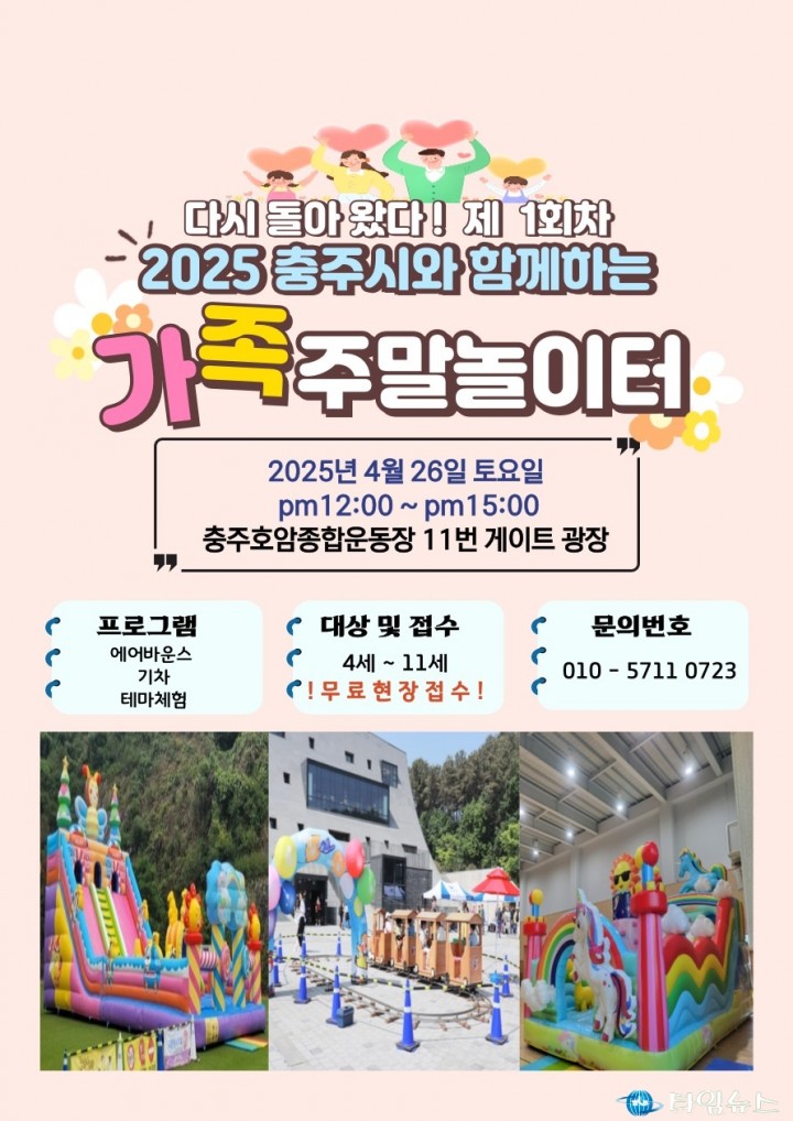 [충주타임뉴스=한정순 기자] 충주시가 오는 4월 26일 충주종합운동장 야외광장에서 ‘2025 제1회 신나는 가족 주말 놀이터’를 개최한다.